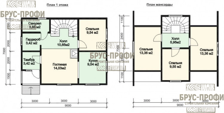 Проект №35 Дом из бруса 7 на 9 от компании «Брус-Профи»