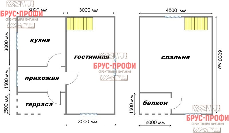 - Все перегородки 1 этажа — брус 100х150 мм.;