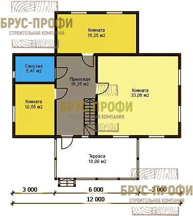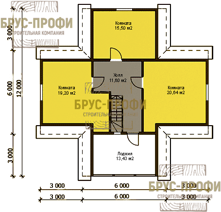 Проект №86. Дом из бруса 12 на 12 от компании «Брус-Профи»