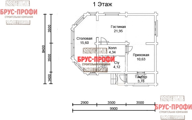 - Все перегородки 1 этажа — брус 100х150 мм.;
