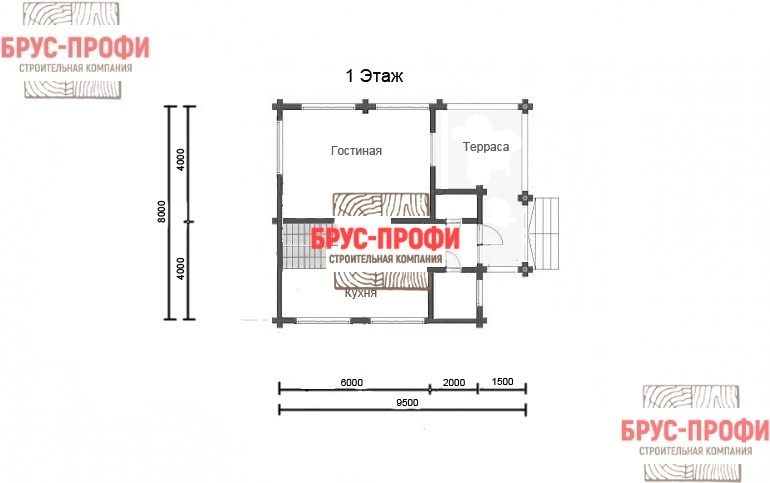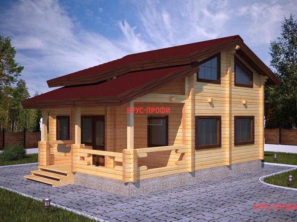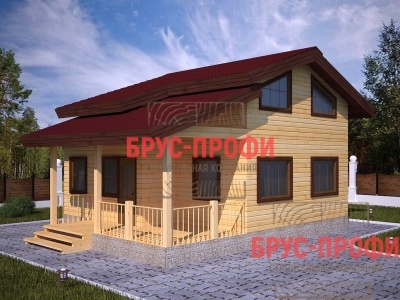 Для постоянного проживания или как загородный коттедж, наша строительная компания «Брус – Профи» предлагает проект дома из бруса 8 на 9,5 метров. Это красивая постройка с оригинальной двухуровневой крышей, имеющая два этажа.