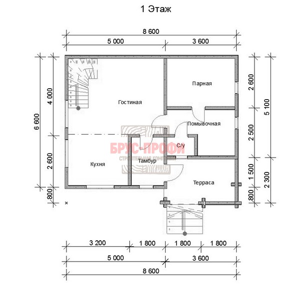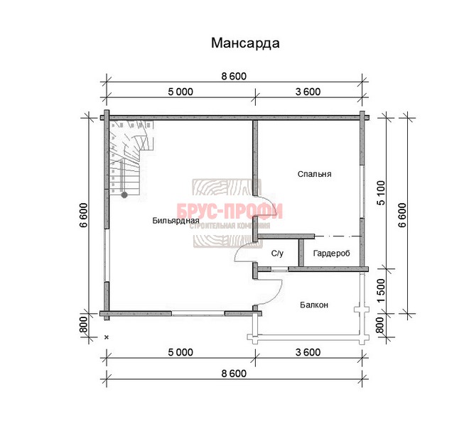 Проект №14 — комбинированный дом 8,6 на 6,6 от компании «Брус-Профи»