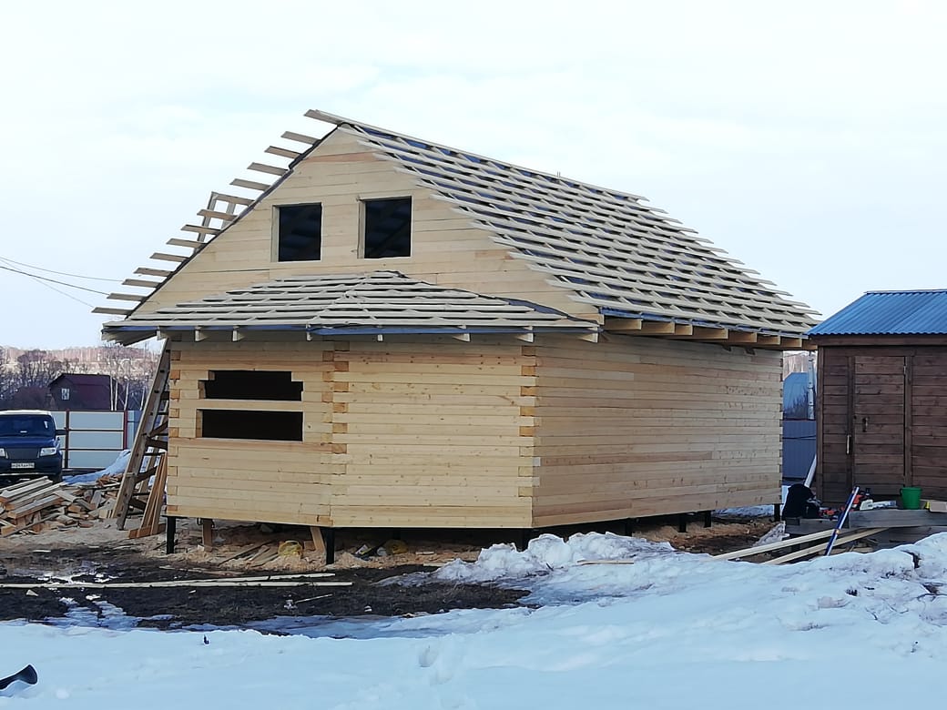 Дом из профилированного бруса 145*145, по 46 проекту с изменённой крышей, строительство г. Зарайск